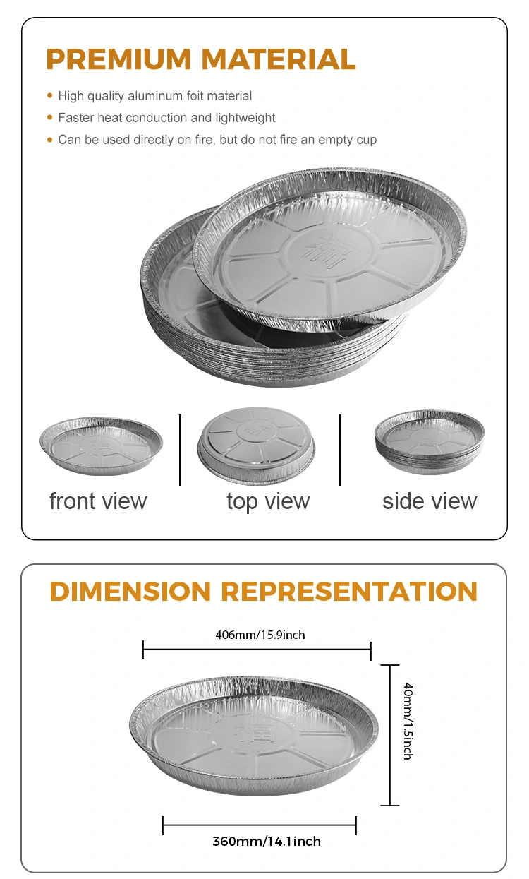 Je poskytnuta dodavatel hliníkových fólie model yr3700 jednorázová vzduchová fritéza Stříbrná hliníková fólie s potravinami. Kontejner má nahoře průměr 406 mm (asi 15,9 palce), 360 mm (asi 14,1 palce) v dolní části, výšku pouze 40 mm (asi 1,5 palce) a kapacitu asi 3 700 ml (asi 130,5 oz). Napařování otevřeného plamene je pohodlné a hygienické, pečení pečení, odolnost s vysokou teplotou 400 ° C není spáleno nebo zlomené, pečení trouby není lepkavé, nebojí se mastného a úmyslného grilu, kvůli jeho schopnosti přímo kontaktovat otevřené plameny, uživatelé se nemusí starat o bezpečnostní problémy. Hliníkové fóliové nádoby jsou odolné vůči vysokým teplotám, vysoce odolné vůči pečení a není snadné ho spálit nebo rozbít. Hrana plného role je bez oleje, brání se jídlu přilepení ke zdi hrnce a ochrana je intimnější.