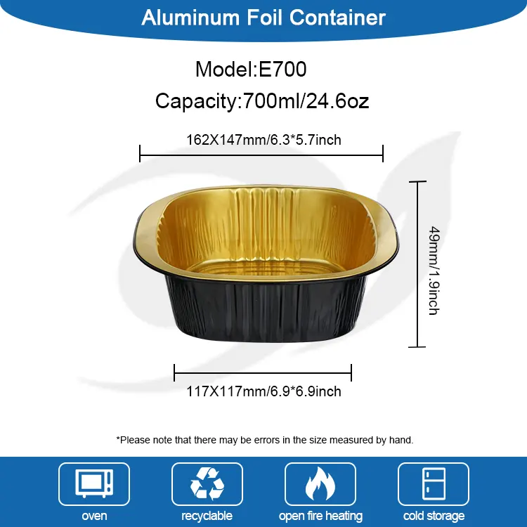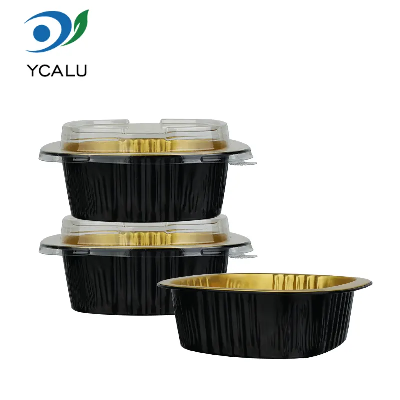 Jednorázová binaurální čtvercová krabice dodavatele Yunchu Aluminium Foil Box z černého zlata se světlostěnnou hliníkovou fólií je vyrobena z potravinářské fólie z hliníkové slitiny 8011. Byly ošetřeny vysokoteplotním žíháním a sterilizačními procesy, aby se na povrchu vytvořila hustá vrstva oxidu. Nemají žádné těžké kovy a žádný zápach. Mohou být v přímém kontaktu se všemi druhy potravin a zabraňují vysrážení škodlivých látek při vysokých teplotách. Ať už se používají k uchovávání teplých pokrmů, studených pokrmů, dezertů nebo omáček, dokážou chránit bezpečnost potravin a splňují řadu bezpečnostních certifikací, jako je FDA a SGS, díky čemuž je každé sousto bezpečnější. Jedinečný design světlé stěny z černého zlata rozbíjí monotónní texturu tradičních nádob z hliníkové fólie. Matný černý zlatý povlak a hladký povrch stěny přinášejí špičkový smysl. Nejen, že má vynikající vzhled, dokáže také účinně blokovat světlo a kyslík, oddálit oxidaci potravin, pevně uzamknout vůni a vlhkost potravin, zabránit přenosu pachů a zachovat původní chuť jídla po dlouhou dobu. Hladký povrch stěny nemá žádné drážky ani vrásky, takže je méně pravděpodobné, že se v něm množí bakterie a snadno se čistí. Může se také lépe přizpůsobit přizpůsobení tisku a pomáhá cateringovým značkám zlepšit jejich uznání a kvalitu.
