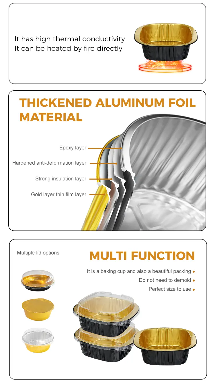 Hot Tags: Jednorázové binaurální čtvercové krabice černé zlaté hliníkové fólie