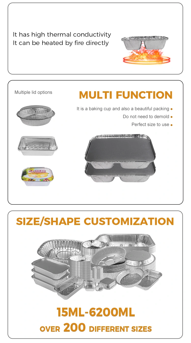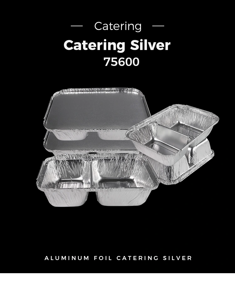 Jednorázové kompartment rychlé občerstvení stříbrné nádoby na hliníkové fólie s víkem papíru má dobrou retenci tepla a může zpomalit ztrátu potravinového tepla. Na podzim a v zimě má dobrý vliv na zachování teplého jídla, jako je například čerstvě vyrobené horké guláš, který do něj může udržovat teplotu jídla po určitou dobu, takže spotřebitelé si mohou při jídle vychutnat teplé jídlo.