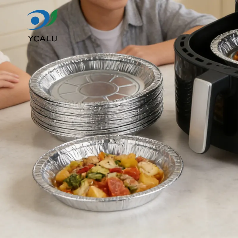 Jednorázová disková vzduchová fritéza Yunchu s hliníkovou fólií Stříbrná nádoba s hliníkovou fólií Vysoce čistá potravinářská hliníková fólie neobsahuje žádné nečistoty a zápach a je v souladu s národními normami pro materiály pro styk s potravinami. Může být v přímém kontaktu se syrovými i vařenými surovinami – ať už se jedná o marinovaný gril, osvěžující pečenou zeleninu nebo jemné, lepkavé a sladké pečené dezerty. Neexistuje žádná možnost pronikání škodlivých látek. Stříbrná lesklá hliníková fólie má vynikající tepelnou vodivost. Jednodílný design disku se hodí pro většinu velikostí fritézy. Je k dispozici ve velikostech 6 palců, 7 palců a 8 palců a je vhodný pro malé porce a sdílení s celou rodinou. Není potřeba opakovaných úprav. Lze jej snadno umístit do fritovacího koše, což umožňuje plné využití výhod materiálu.