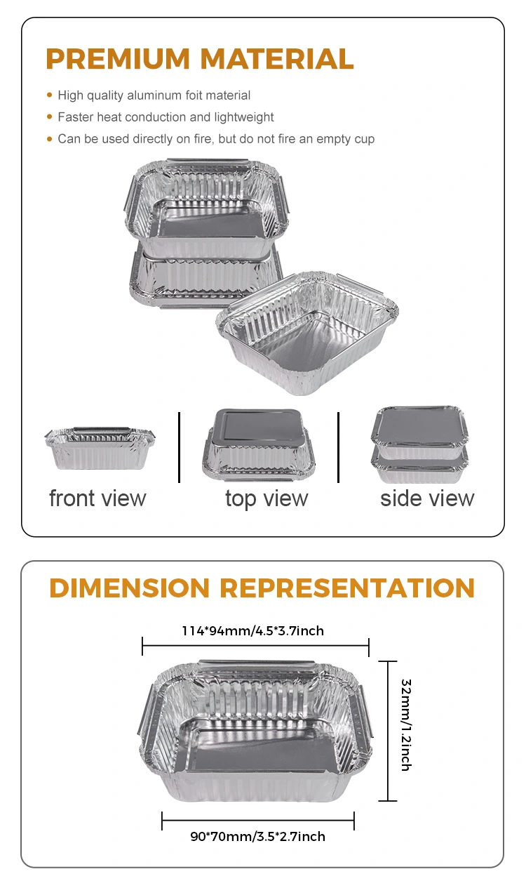 Kromě toho je tato jednorázová grilovací obědová krabice stříbrná hliníková fóliová kontejner také velmi bezpečná, protože ji lze normálně používat pod otevřeným plamenem, aniž by se obával vůbec o nebezpečí požáru. Její vynikající teplotní odolnost a těsnění zároveň poskytuje záruku pro bezpečné přepravu potravin, což spotřebitelům a zákazníkům umožňuje používat je s větší jistotou.