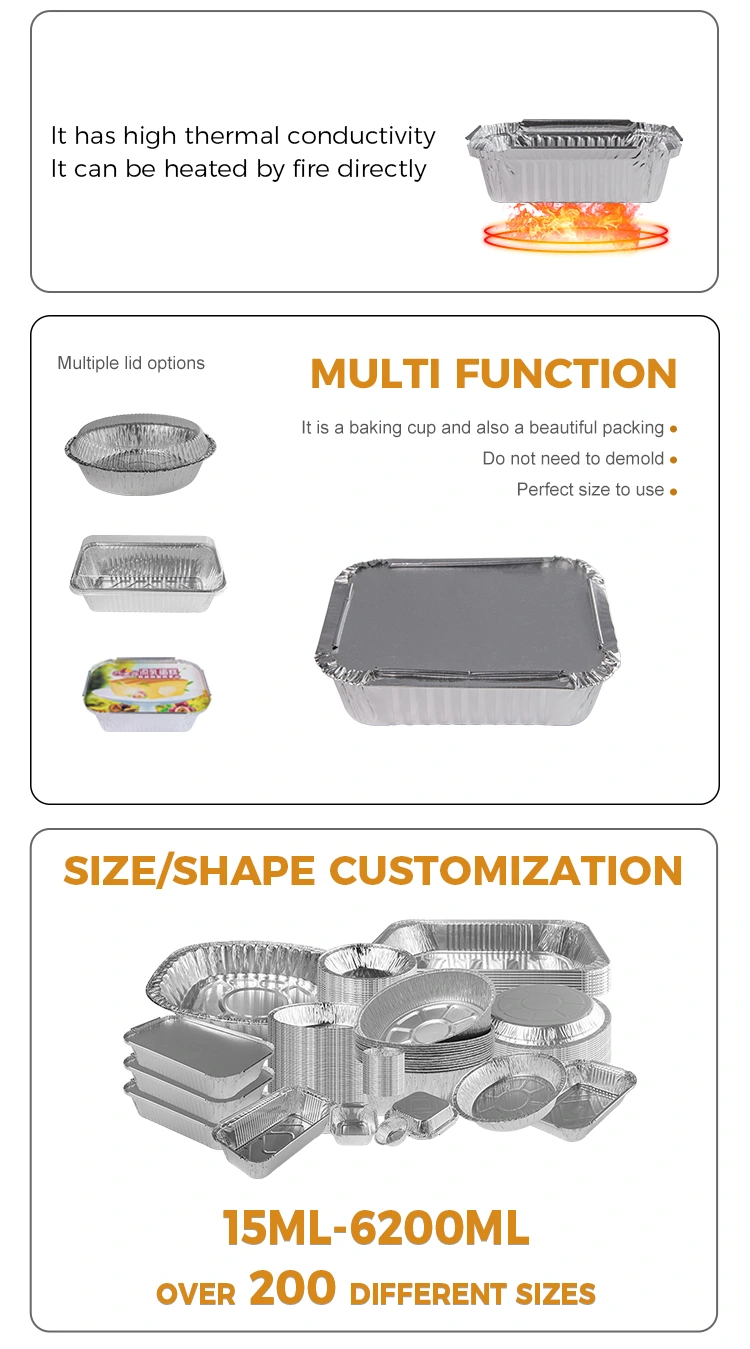Jednorázová fóliová krabička na fólii Yunchu Aluminium Fólie se vyrábí s vysoce kvalitním stříbrným materiálem 8011-0. Tento produkt je určen pro různé potraviny, jako je grilování, pečení, fritézy a předem vyrobená jídla, zejména pro ty, kteří mají venkovní grilování a rodinná setkání.