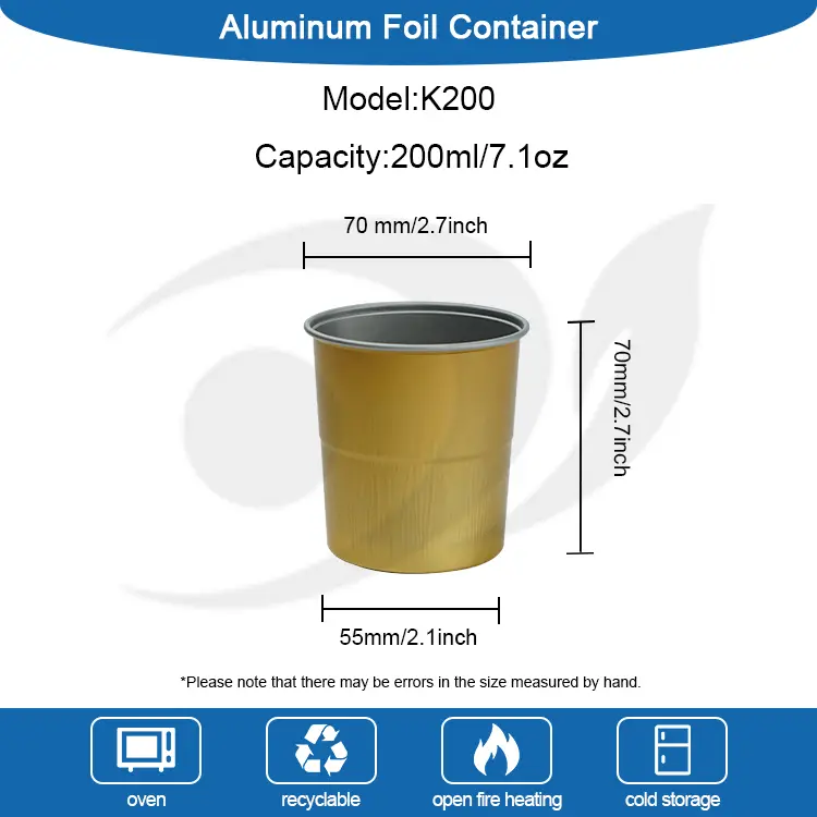 Továrna na hliníková fólie Yunchu používá vysoce kvalitní materiály pro potraviny k tomu, aby tento přenosný nápojový šálek K200 byl vyroben z 8011 hliníkových fólie, aby se zajistilo, že není toxická, chutná, bezpečná a spolehlivá. Pohár má na povrchu moderní design s drážkou na dně, která je stabilní a neklouzavá, aby se stála, což usnadňuje přenášení a používání. Uživatelé si mohou vybrat, zda umýt šálky nebo ne, a mohou být po použití přímo vyřazeny nebo recyklovány, což je velmi šetrné k životnímu prostředí. Šálek provádí teplo rychle, ať už je studené nebo horké, může rovnoměrně rozptýlit teplo a je to pohodlně držet, snadno se hromadit ve více vrstvách a šetřit prostor. Unikátní design tělesa, který je kužen, široký nahoře a úzký na dně, poskytuje více možností.