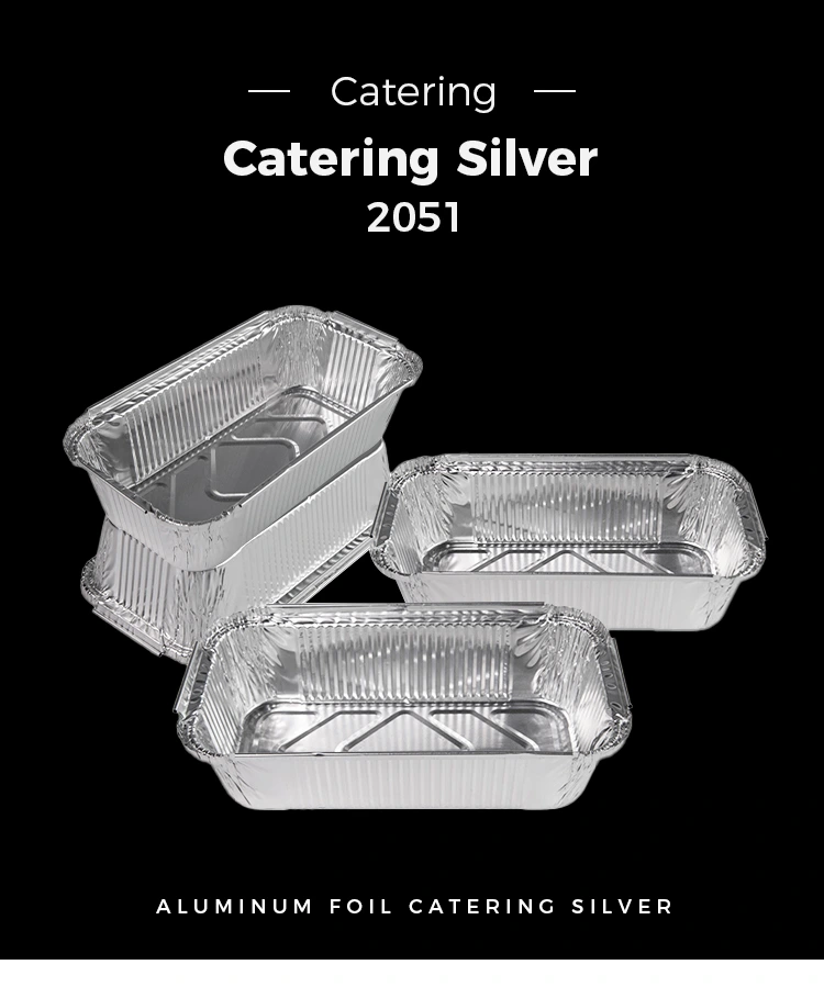 • Jednorázové obdélníkové pečení stříbrné hliníkové fólie nádobyJednorázové obdélníkové pečení stříbrné hliníkové fólie nádoby