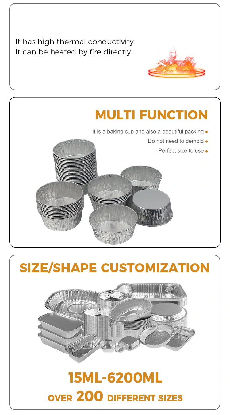 Jednorázová stříbrná kulatá fritéza z hliníkové fólie dodavatele Yunchu je navržena tak, aby byla jednorázová, což zcela eliminuje únavné mytí nádobí po jídle, což šetří čas a energii; materiál hliníkové fólie je recyklovatelný, šetrný k životnímu prostředí a nezatěžuje, s ohledem na pohodlí a ekologické koncepty. Malý a nádherný vzhled, stohovatelné úložiště nezabírá místo a snadno šetří úložný prostor v kuchyni. Ať už se používá doma nebo v podnicích, tato jednorázová stříbrná kulatá nádoba z hliníkové fólie dokáže vyřešit problém skladování a používání dipů s vysoce kvalitními materiály a promyšleným designem, díky čemuž je každé vaření a každé setkání bezstarostnější a pohodlnější.