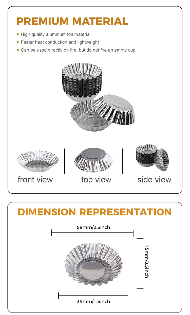 Non-slip Aluminum Foil Container Cup Body Cup body is designed with anti-slip texture, increase friction, prevent slipping, curled cup mouth design, easy to take, will not hurt hands, multiple large capacity design at one time forming, no need to clean, save time and energy, widely used for baked egg tarts, cakes, egg yolk crisps, bowl cakes and other delicacies, environmentally friendly materials have passed German ERP certification, EU Certifikace SGS a certifikace systému správy kvality ISO9001, zajistěte bezpečnost a environmentální přívětivost produktu.