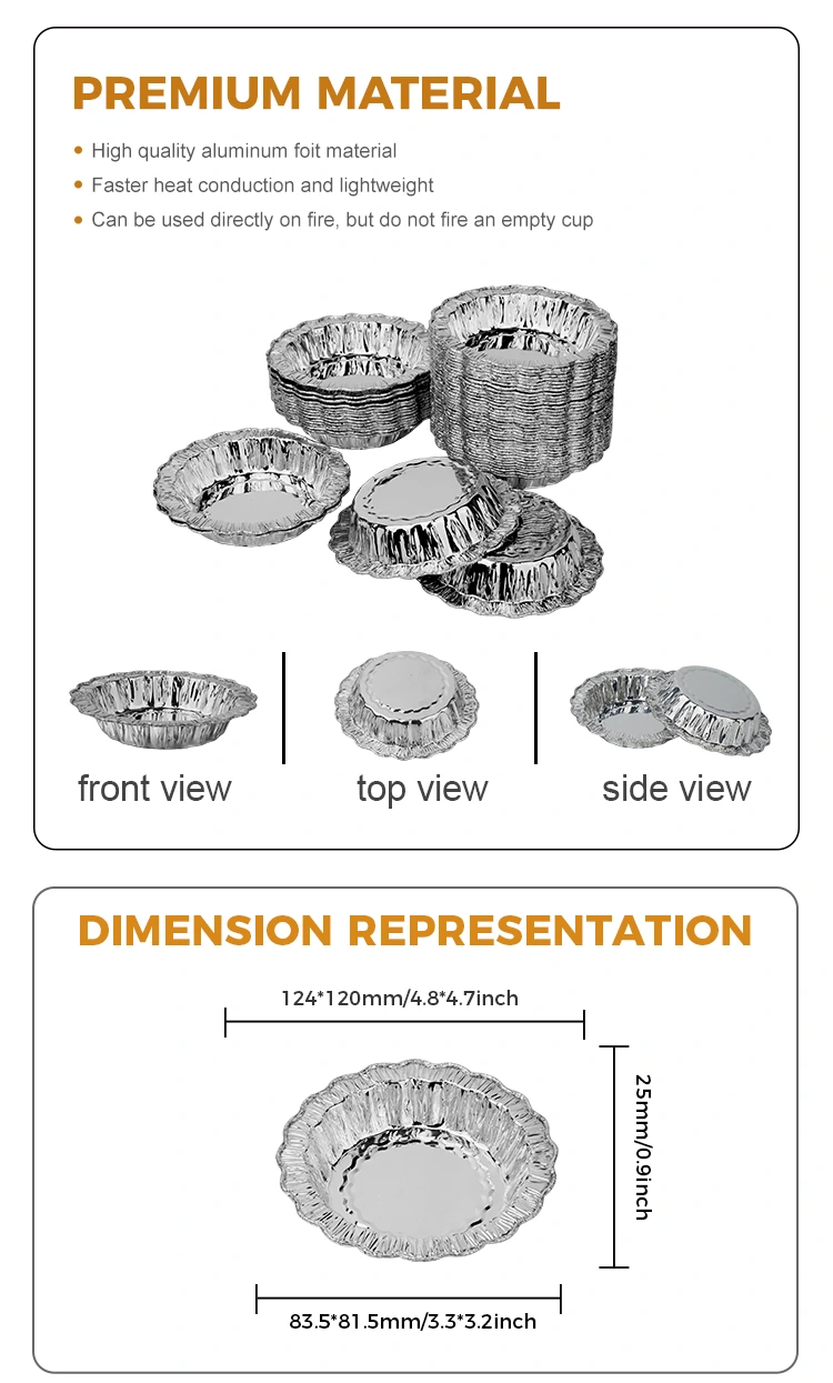 Hliníková fólie Yunchu vám poskytuje krajkový kulatý pekáč koláč Stříbrné hliníkové fólie jsou univerzální pro pečení a napařování. Je navržen pro více využití, schopný vyrábět koláče, koláče s miskami a různé další pochoutky. Je jednorázové, není třeba čištění a vydrží vysoké teploty od -30 ℃ do 250 ℃, ne pálení nebo lámání. Vyrobeno z hustých, vysoce kvalitních materiálů, potravinářských a ekologických materiálů, je bezpečnější používat bez škodlivých látek. Je odolný vůči poškození, robustní a odolný, se silnou pevností v tahu a dobrým prodloužením, zatímco okraje jsou hladké, aby se zabránilo řezům. K dispozici jsou různé specifikace, které uspokojí rozmanité potřeby pečení.