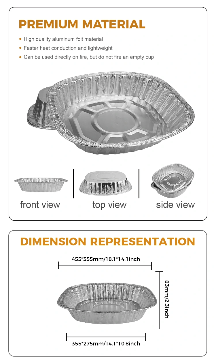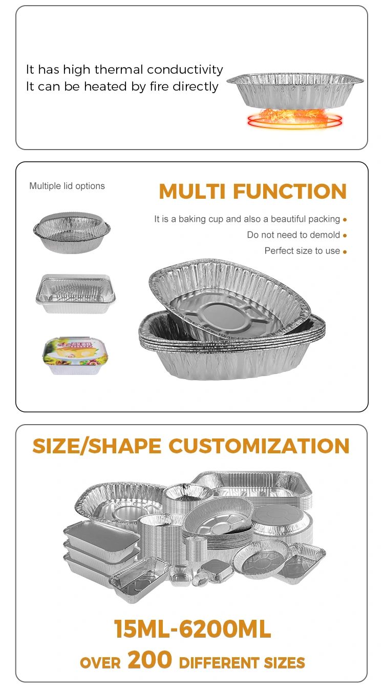 Tento produkt je jednorázovým produktem a nemusí být vyčištěn, což šetří náklady na práci. Může být spárován s plně průhledným víkem hliníkové fólie s plně průhlednou hliníkovou fólií, což účinně zabraňuje úniku prachu a kapaliny. Trvanlivost a bezpečnost produktu je zvýšena návrhem výztuh a pravidelným konkávním a konvexním tvarem dna. Přenosná konstrukce usnadňuje přenášení a teplo, odolné vůči vysokým a nízkým teplotám, které lze použít v teplotním rozmezí -20 ° C až 250 ° C a je nepropustný pro olej a vodu, zvyšuje zadržování tepla a přepravní těsnost produktu.