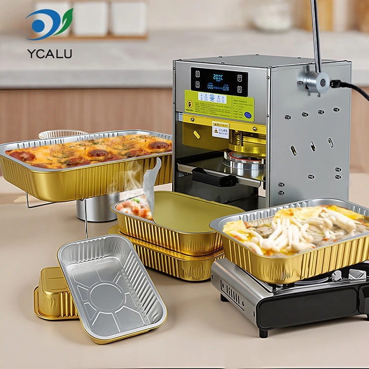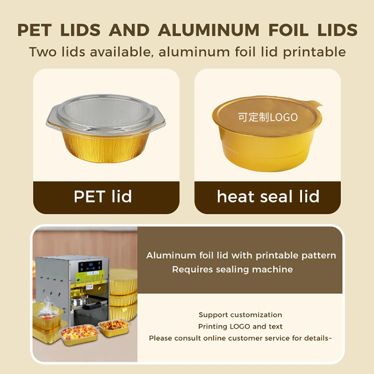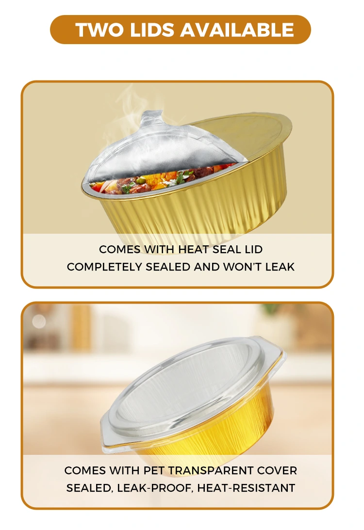 Yunchu je profesionální výrobce a dodavatel hliníkových fóliových kontejnerů v Číně. Náš ruční stroj na tepelné svařování se zlatými hliníkovými fóliovými kontejnery má dvojí výhody úrovně vzhledu a pevnosti. Stala se preferovanou kombinací pro catering s sebou, skupinové rozvozy jídel a průmysl hotových jídel. Dokáže nejen vyzdvihnout kvalitu značky, ale také vyřešit problém balení, snížit náklady a zvýšit efektivitu pro obchodníky a poskytnout spotřebitelům uklidňující zážitek.