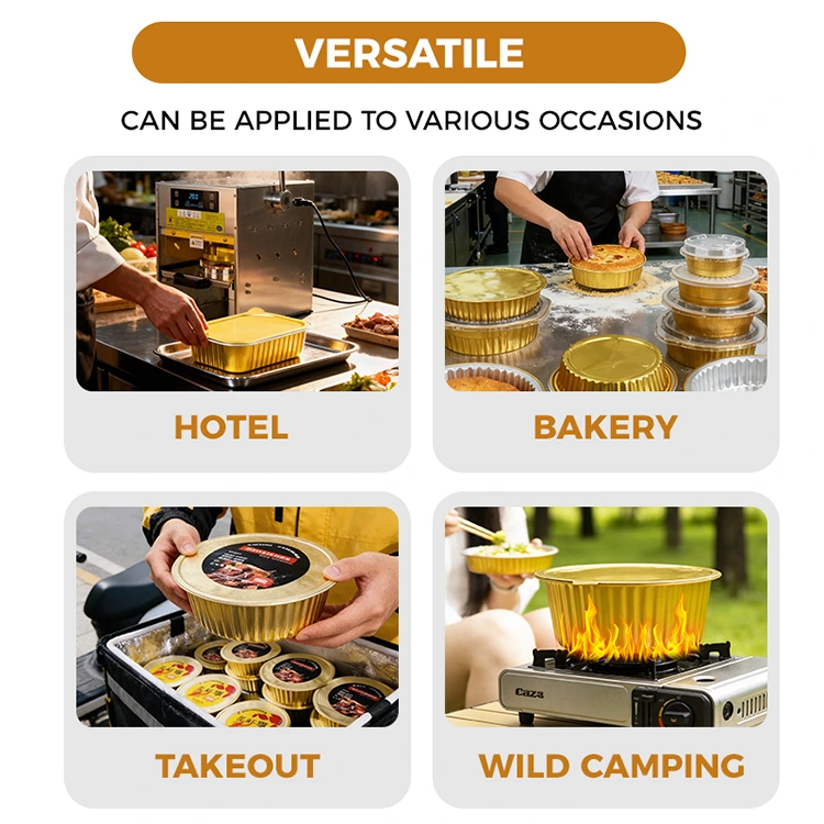 Komplexnější scénáře: Cateringový průmysl: špičková dodávka s sebou, porcování banketů, předpřipravené balení potravin, kombinace kvality a praktičnosti; Potravinářské podnikání: Malé dílny na občerstvení, zpracování omáček, elektronický obchod s čerstvými potravinami, dosažení profesionálního balení za nízkou cenu; Festivalové dárky: Vánoce, jarní festival, festival poloviny podzimu a další festivalové dárkové krabičky na jídlo. Zlatý vzhled umocňuje sváteční atmosféru a zapečetěný design zajišťuje čerstvost dárků.
