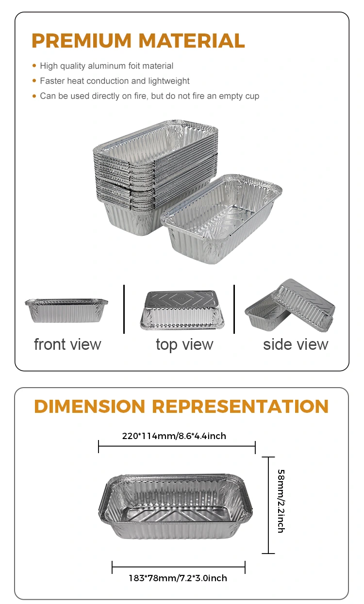 Yunchu aluminum foil supplier, Rectangular barbecue thickened Silver Aluminum Foil Containers, is a good helper for barbecue, hot pot, baking, takeaway packaging, a variety of cooking skills can be done in a box, various sizes are suitable for a variety of pots and equipment, etc., sizes and specifications, to meet a variety of open flame barbecues, etc., can choose to make any food, air fryer and other equipment Aplikace, odolnost proti teplu a oleji, snadné pečení, venkovní grilování, dočasné misky se nebojí oheň, když se používají, potřebují jídlo nebo polévku, nesušíte bez vody, pece pro domácnost jsou čisté a pohodlné k likvidaci pokrmů.