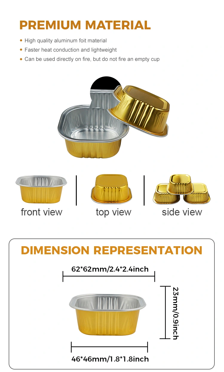 Nádoby na pečení dezertů Yunchu Aluminium Foil Manufacturer's Square Smoothwall Aluminum Containers lze použít ve fritéze, pečení, omáčkách atd. Tyto hrnky na pečení mají speciální vyztužený žebrový design a jejich krátká struktura těla košíčků z nich dělá dobré třecí vlastnosti, nesklouznou, snadno se berou a nebudou bolet ruce a ústa. Jsou vhodné pro přípravu různých dezertů včetně cupcaků, pudinků, křehkého pečiva, koláčů, skořicových rohlíků, tvarohových koláčů, pudinků a pudinků. Tato žebrovaná struktura poskytuje extra podporu a je zvláště vhodná pro použití v komerčních pekárnách nebo velkých supermarketech.